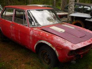 Mazda 1800 sedan varaosa-auto. Osittain purettu.